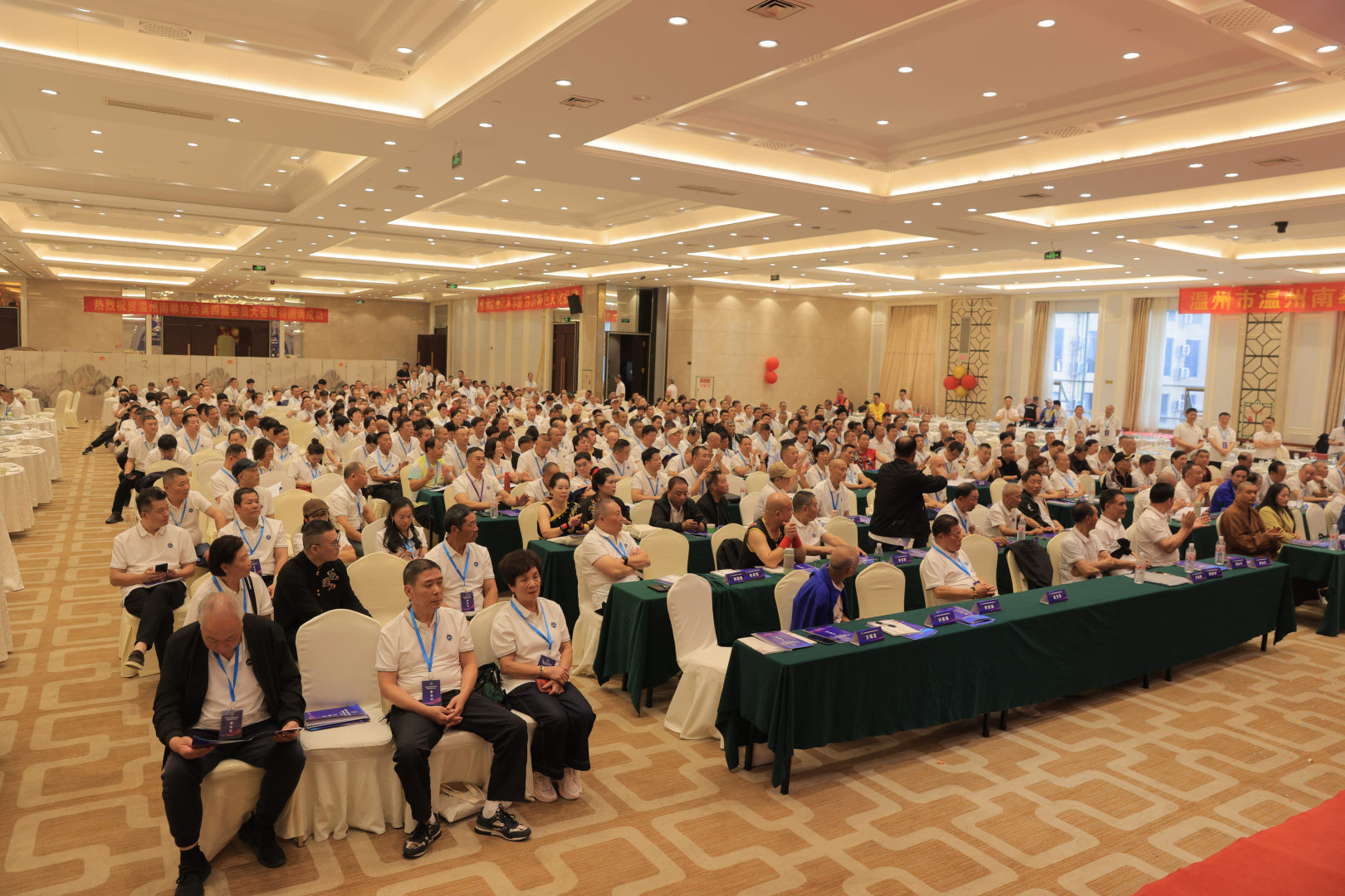 换届大会前,500多名会员进行了大型集体照合影拍摄,现场场面隆重,作为温州具有特色的武术类体育社团,能够组织社团会员进行大规模的集体拍摄活动实属罕见,也是本次温州南拳协会换届大会的最大亮点。