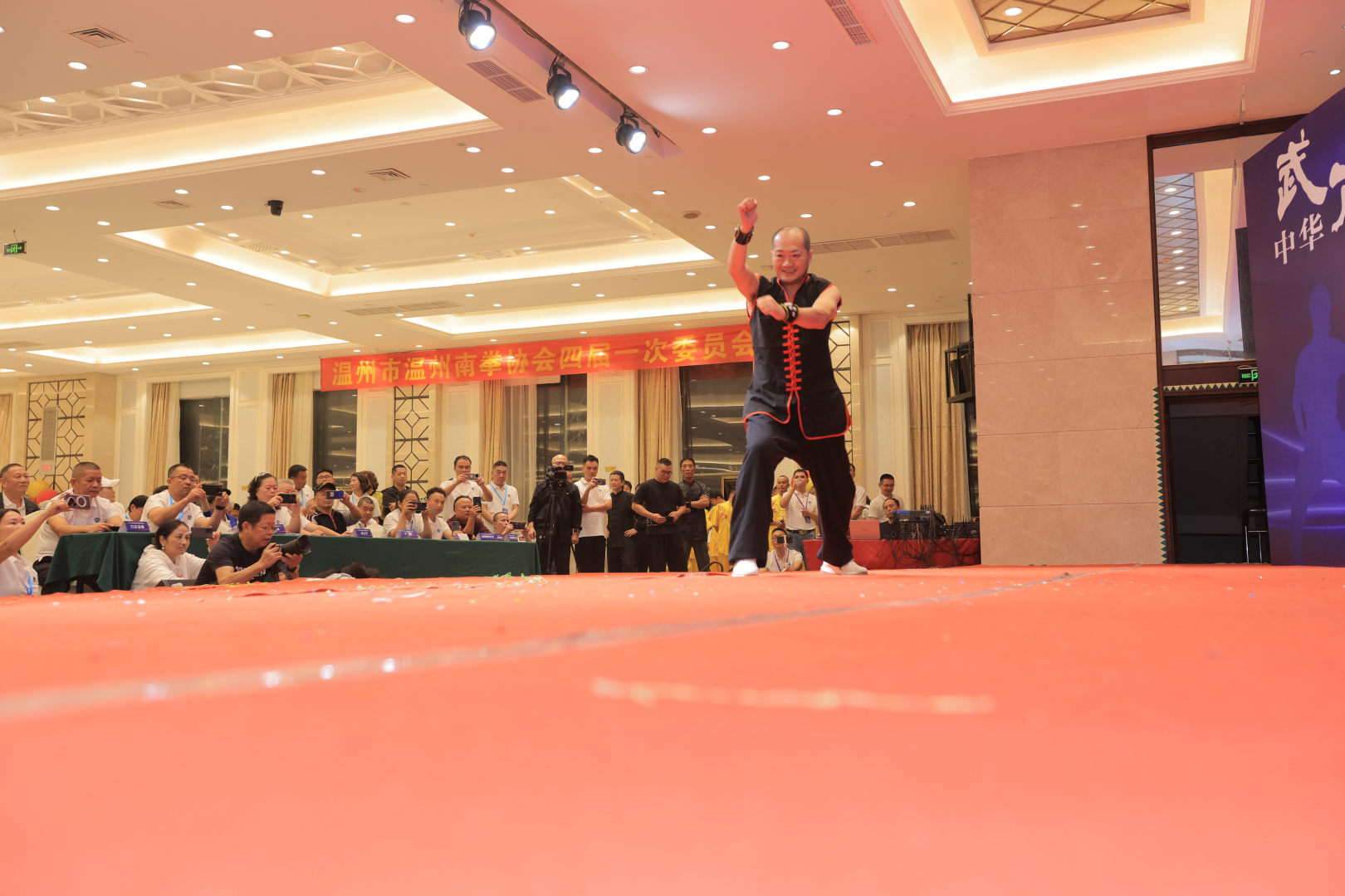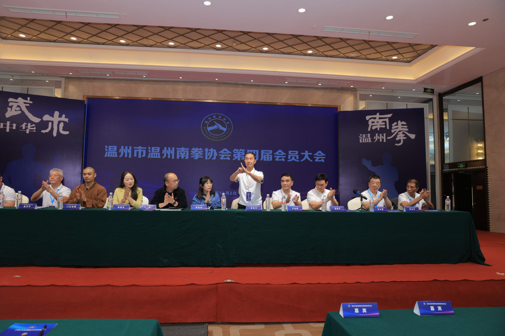 11月2日下午,温州南拳协会第四届会员大会举行,来自全市各地的南拳拳师及爱好者500多人齐聚一堂。浙江省武术协会副主席、台州市武术协会主席卢仙春,温州首个武术国际级裁判余自力等领导和嘉宾出席会议,温州武术名家胡云平当选新任主席。
