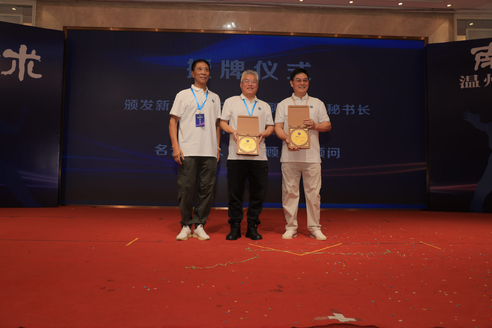 最后,新当选主席胡云平向潘挺宇和金文平两位老主席颁发“杰出成就奖”,以表达对两位主席为温州南拳事业发展作出重要贡献的肯定。